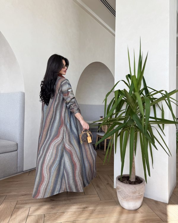 جلابية بقماش لينن ٣ قطع الكارديغان و الفستان الداخلي و الحزام