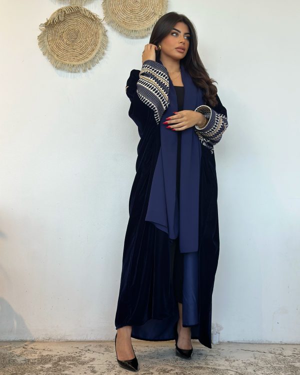 عباية كحلية برسمة السدو على الاكمام قماش العباية: مخمل قصة العباية: نص بشت ملاحظة: الرجاء العودة للفيديوات على صفحة الانستقرام لتوضيح قصة ولون العباية الرجاء العودة لصفحة طريقة الغسيل و جدول المقاسات كما موضح في الموقع