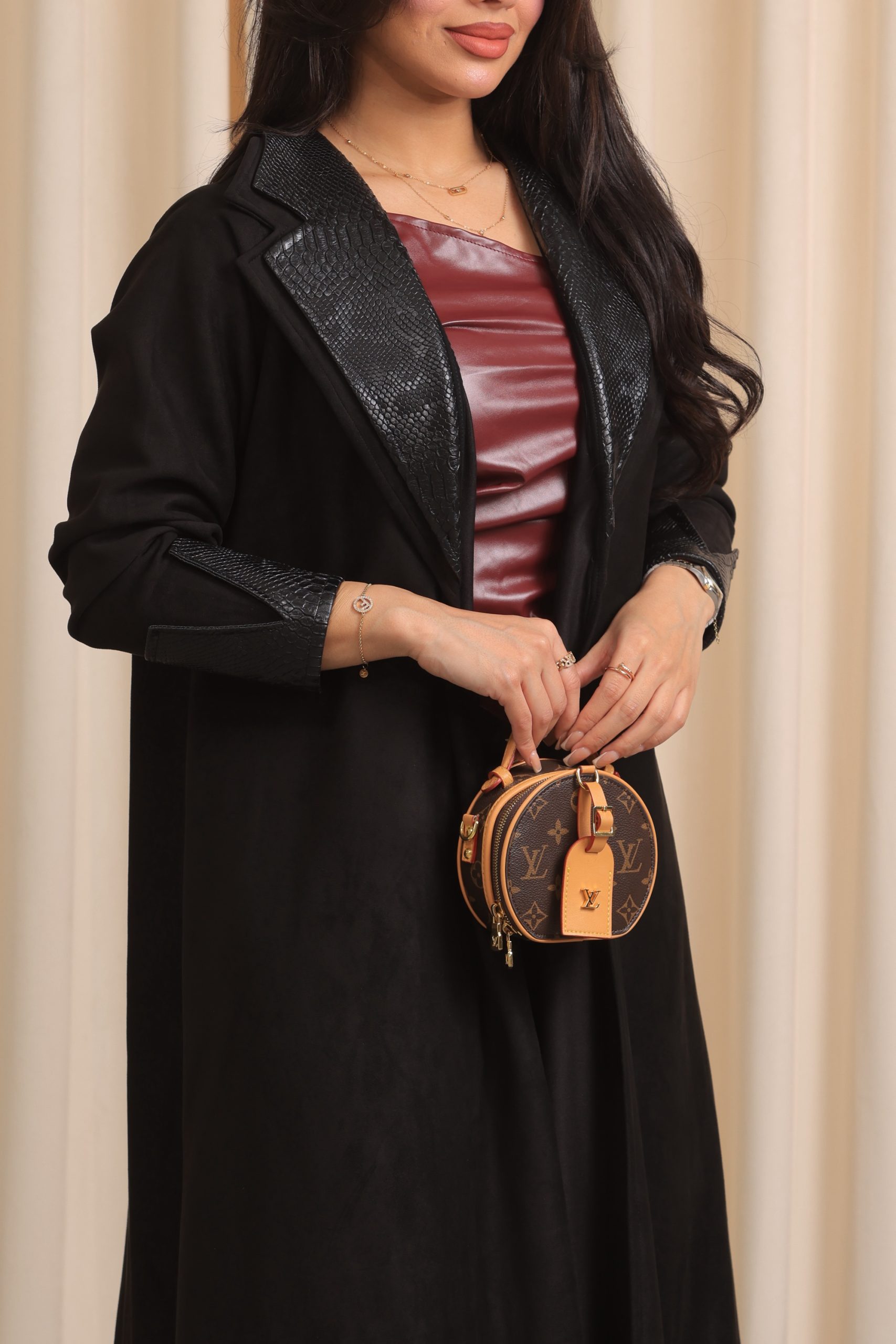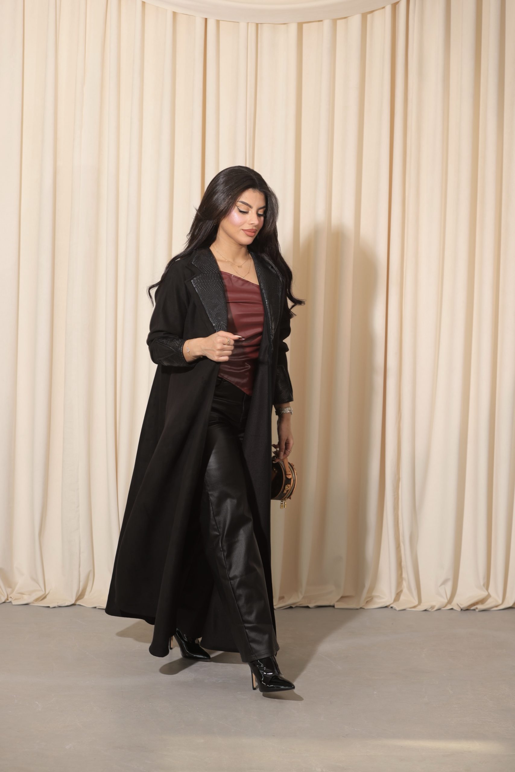 قماش العباية: شامواه وجلد اسود