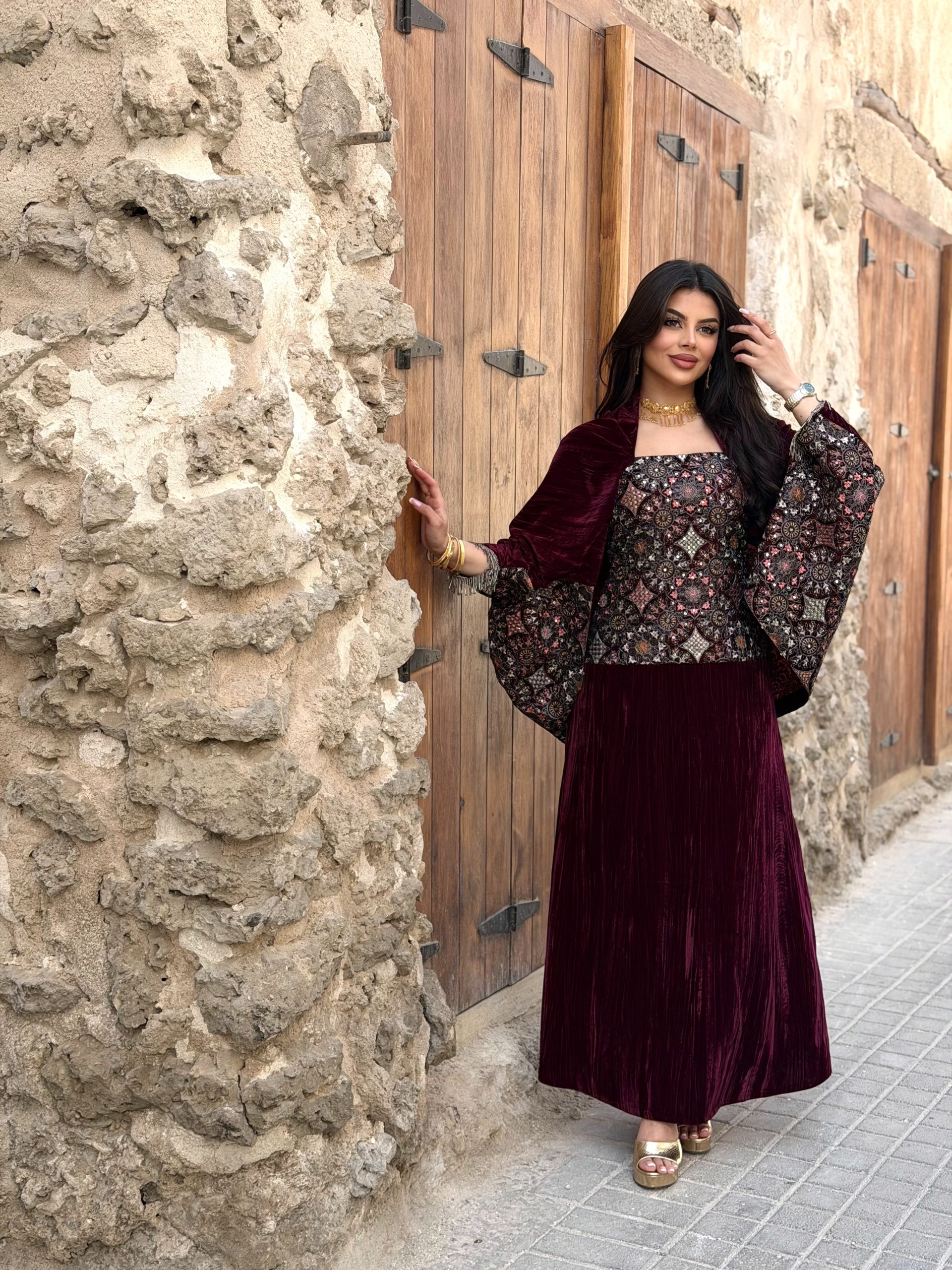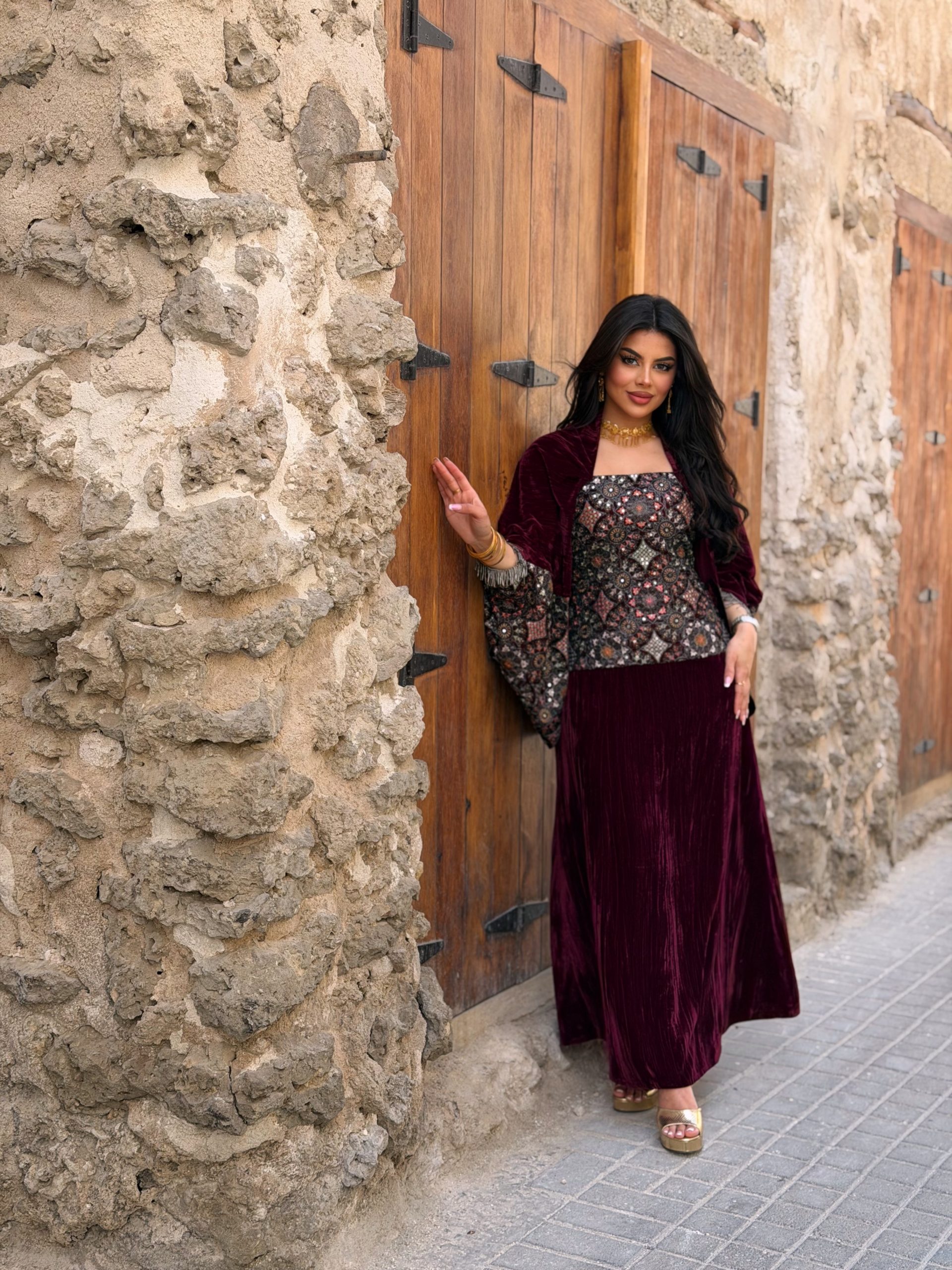 جلابية مكونة من قطعة مطرزة و مشكوكة باللون السلفر برسمة فخمة