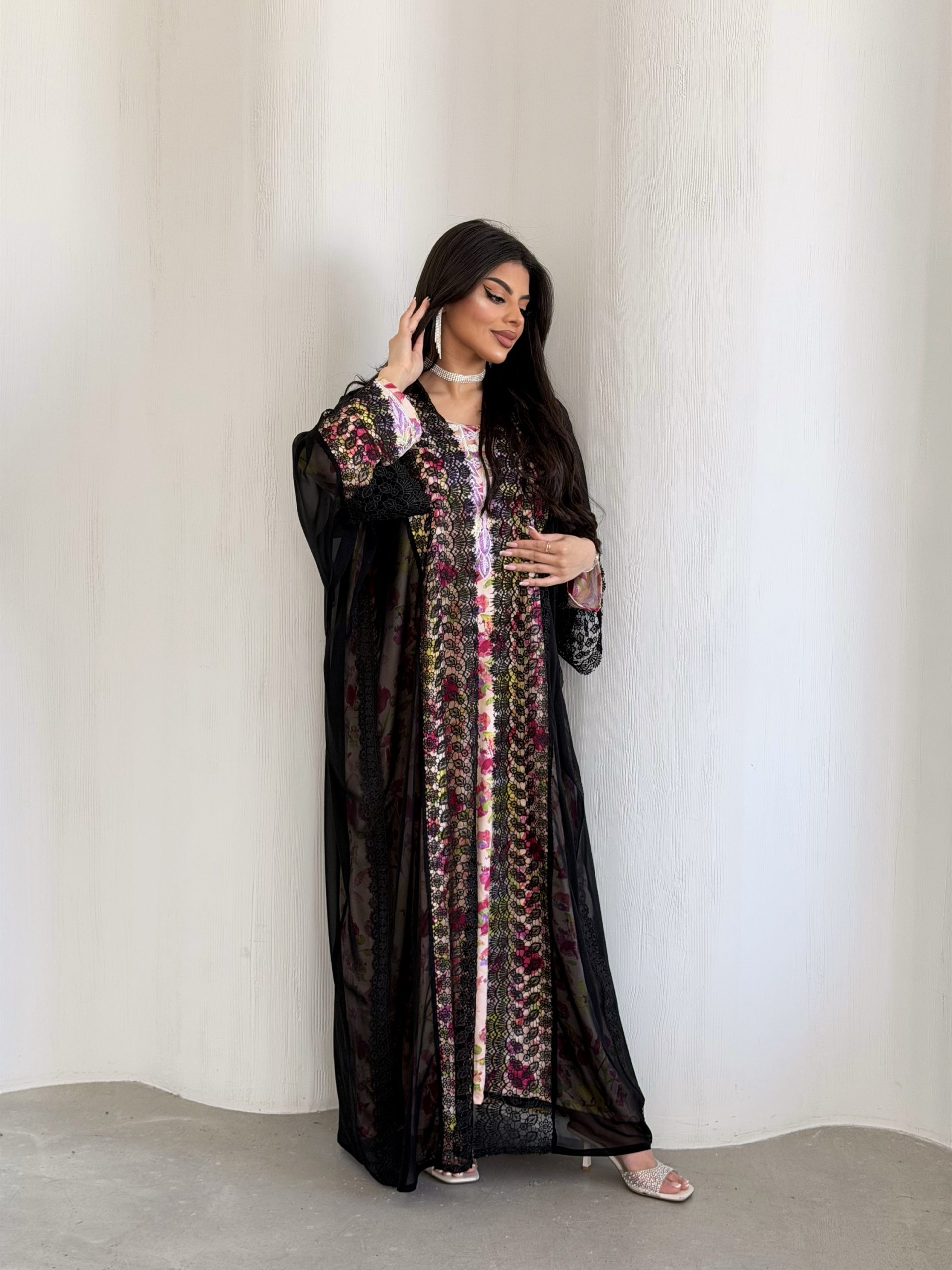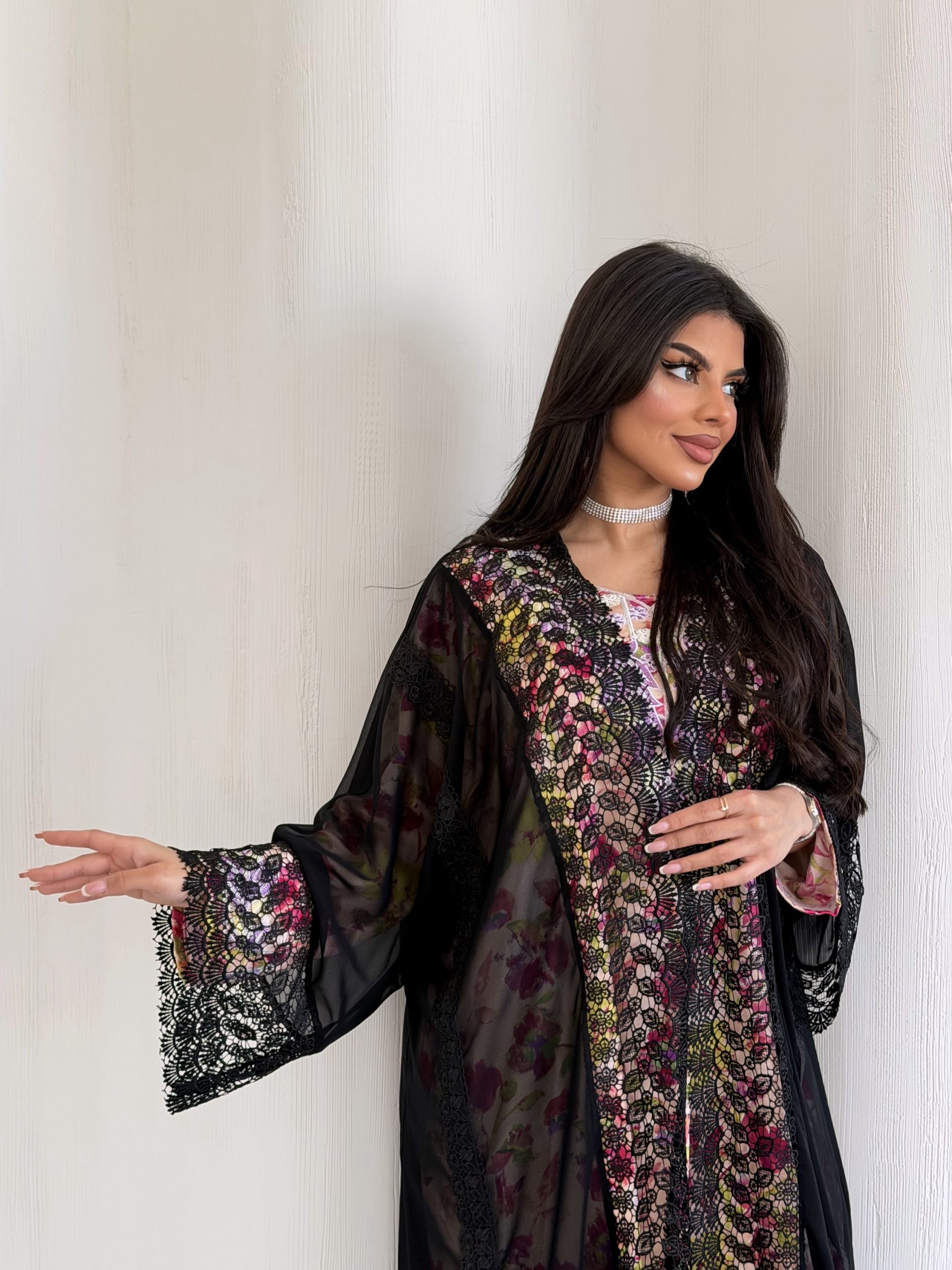 عباية شفافة مناسبة للجلابيات و المخاوير تتميز بتفاصيل الدانتيل الانيقة