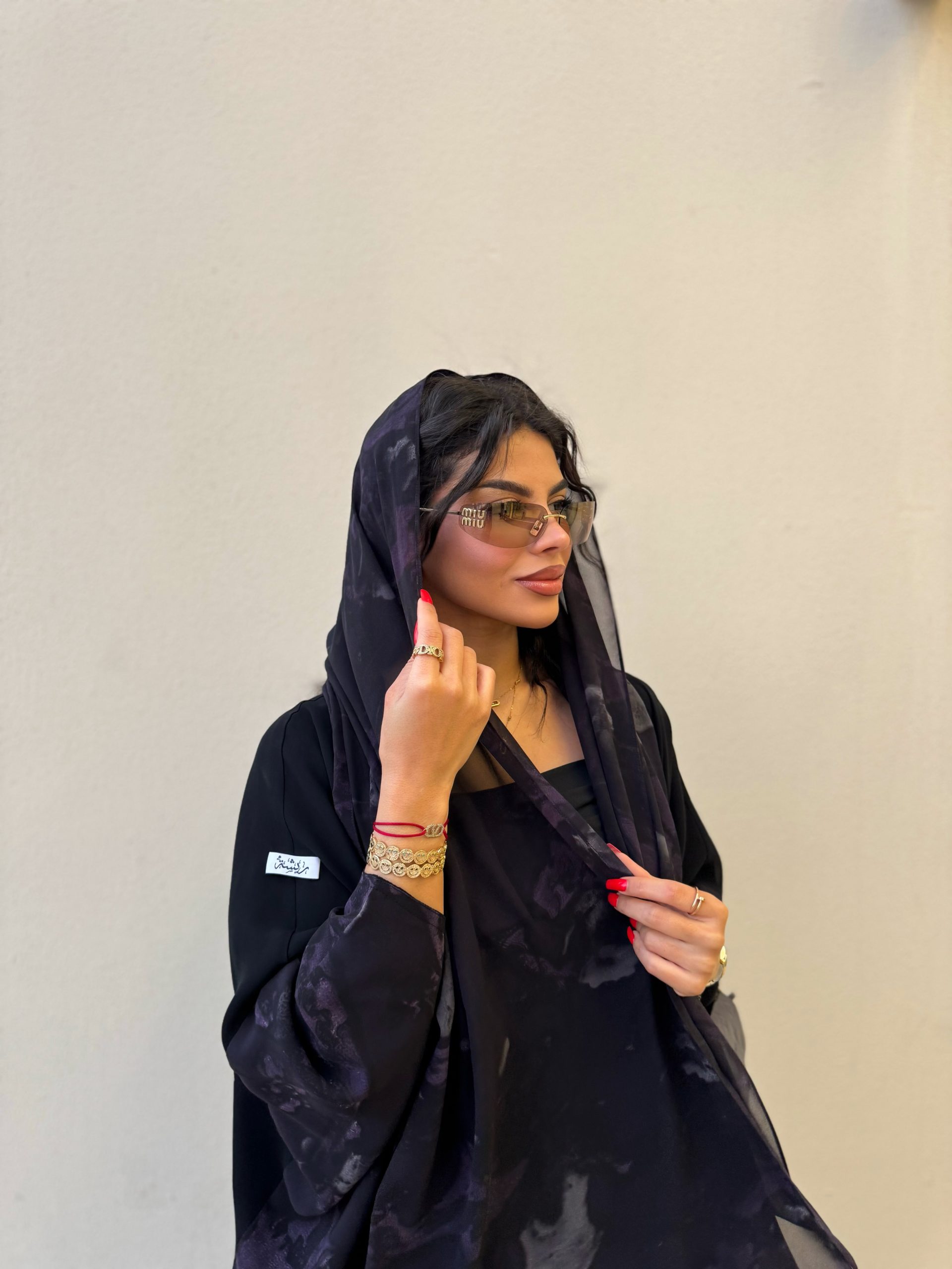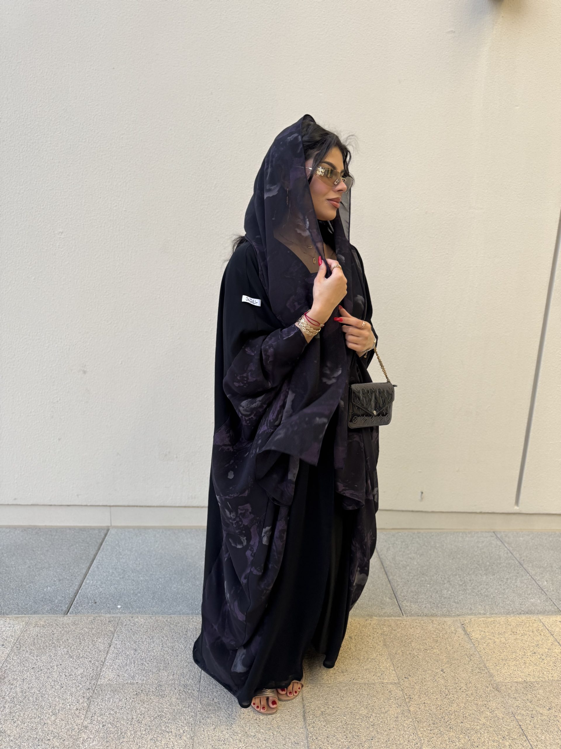 عباية بتدخيلة قماش بنفسجي في الطرحة و الجوانب